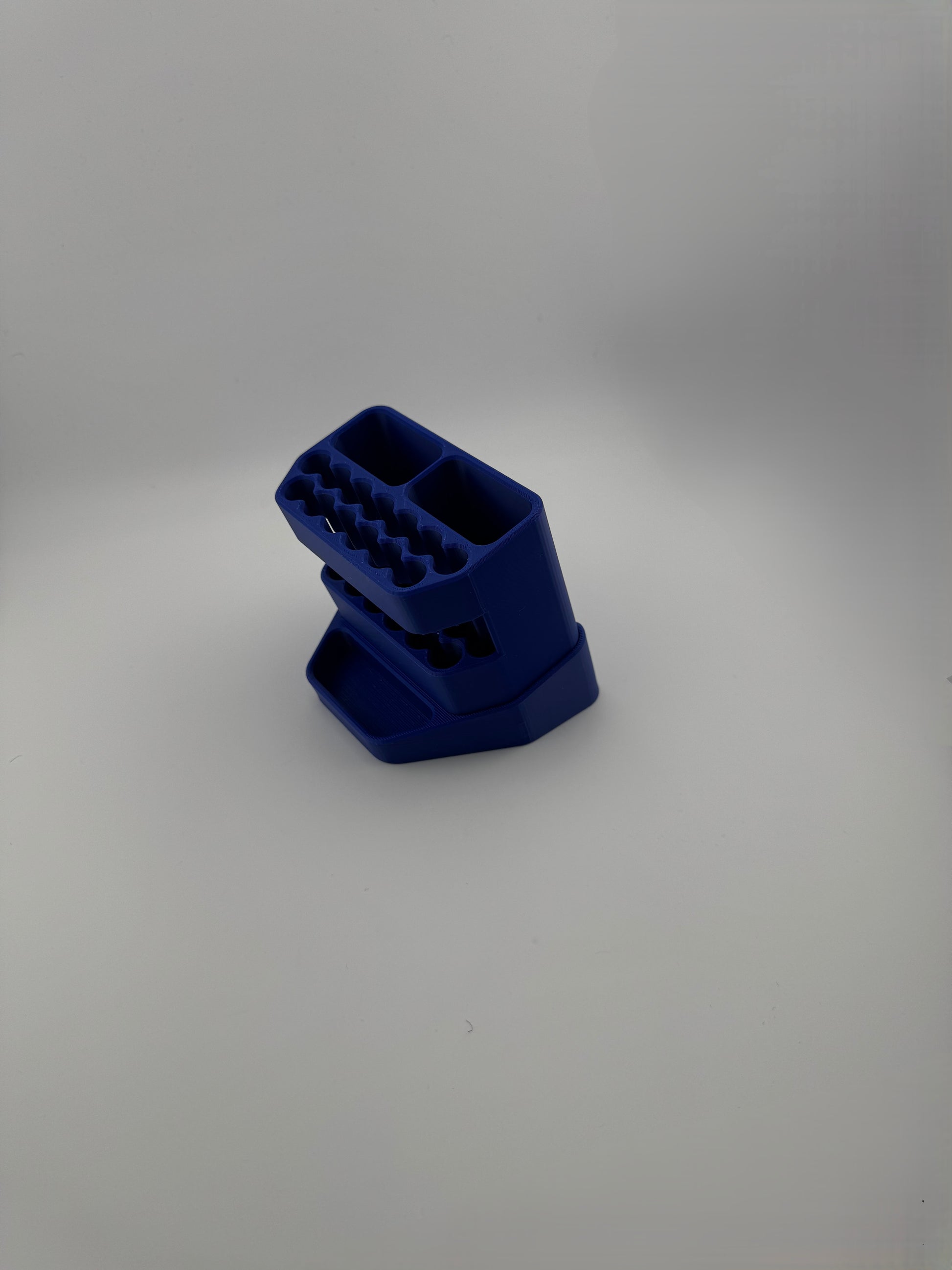 - Ergonomisches Design: Der schräge Winkel ermöglicht eine komfortable Entnahme und Ablage der Stifte, ohne langes Suchen.